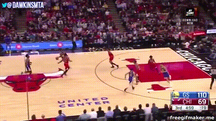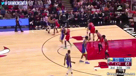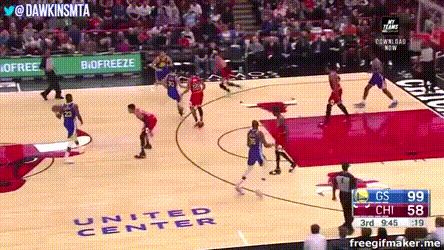 最明顯的一個三分球是這樣的:克雷突破分球,格林弧頂拿球后等着,等克雷和庫裏左底角交叉掩護,再長傳給克雷,71比45。