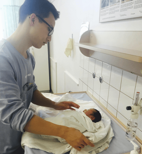 直到那天生完孩子,護士專門把爸爸叫去做了輔導,非常細緻地教他如何給孩子換尿布、洗PP、怎麼抱剛出生的寶寶,怎麼給寶寶拍嗝等等常識。躺在牀上的我那時候突然明白,芬蘭奶爸大概就是這麼培養出來的吧。
