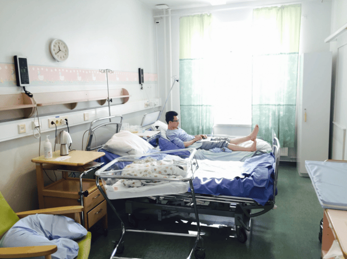在芬蘭通常生完孩子後2-3天,經過醫生確認就能出院了。由於我低血糖,外加上我和miu爸都極其享受在醫院裏一日四餐“飯來張口”的待遇,我們住了4天后才依依不捨地出院。
