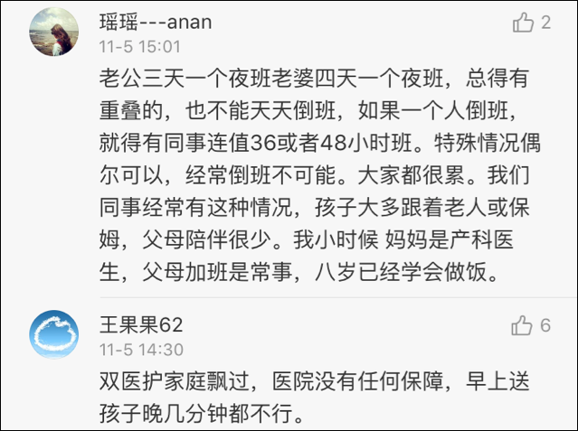 你想這種看起來最為輕鬆的教師職業尚且如此,更別提需要24小時輪班制的醫護人員帶孩子有多為難了。