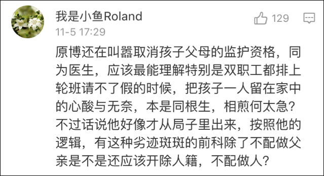 不過大多數網友的關注點還是在於,值班媽媽將孩子一個人丟在家裏是不是不負責?