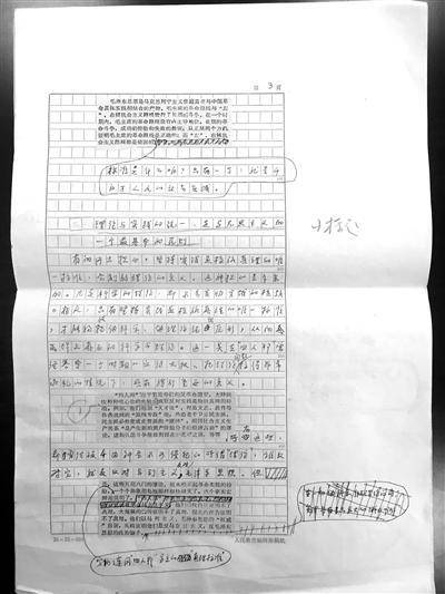 9頁孫長江的修改手稿複印件在北青報記者面前一字排開。可以看到,每一張上面,孫長江都把大樣(胡福明的稿子經《光明日報》多次修改後的版本)一段段剪下來,貼在稿紙上,然後在稿紙空白處寫滿了字跡。事實上,這一版修改稿已經是他多次修改後、正式排印前的最後一稿。