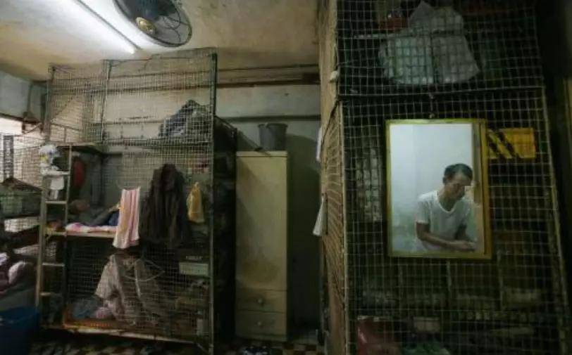 一個籠子住一個人。面積一般在2-4平米,每月租金,摺合人民幣1500-2500元不等。