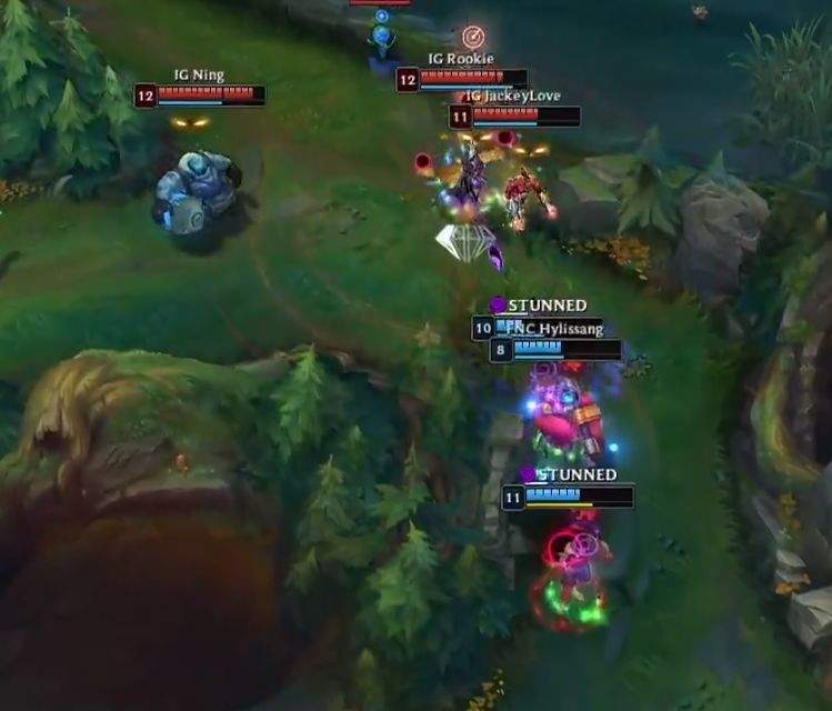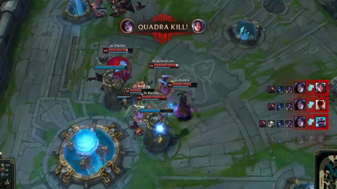 S8決賽第一場,iG在第二次強殺Caps後四人推進,眼看Rekkles沒有回城的打算,直接決定推二塔,以此建立優勢,而在隨後的一波峽谷先鋒爭奪中,iG打贏小規模團戰後不依不饒,追了大半個地圖殺刀妹。接下來的下路推進太兇,被Bwipo的厄加特反打,下路雙人組暴斃。。。