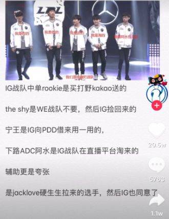 中單Rookie是買kakao送的,theshy是WE戰隊不要的,Ning是向PDD借用的,Jackeylove是從直播平台淘來的,輔助Baolan是關係户,被Jackeylove拉來的。