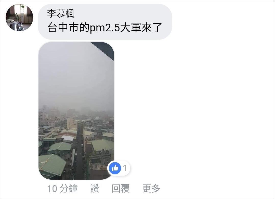 有不少的台灣網友紛紛在臉書平台上曬出自己住所附近的空污圖,