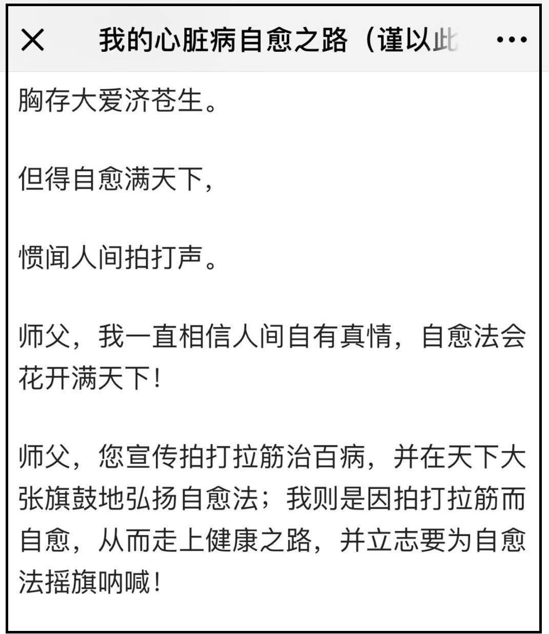 “自從上次澳洲體驗營有意外死亡發生後,就不斷有人質問我:你為什麼還沒坐牢?我就自問:我夠資格坐牢麼?”“如果醫院裏死亡幾萬人是天經地義,而自愈法體驗營意外死一個人就是殺人犯,那不是自愈法有問題,而是媒體和專家的自私與偏見在顯示整個社會的病。”