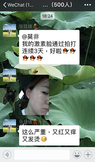 有停用了水光針後,滿臉痘痘的激素臉小姐,在每天不停拍一兩千下後自愈了