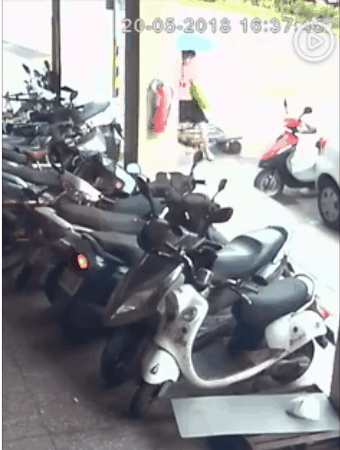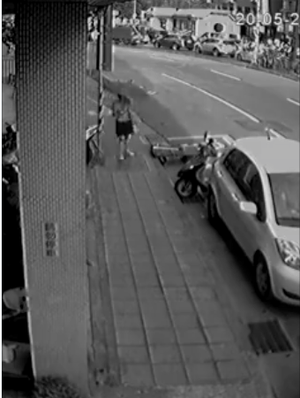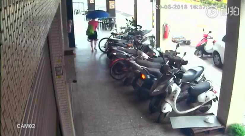 這一個視頻的當事人是個女子。該女子撐着太陽傘走在騎樓下,走着走着也是突然轉身往回走,還以為是落了什麼東西,要回去找。