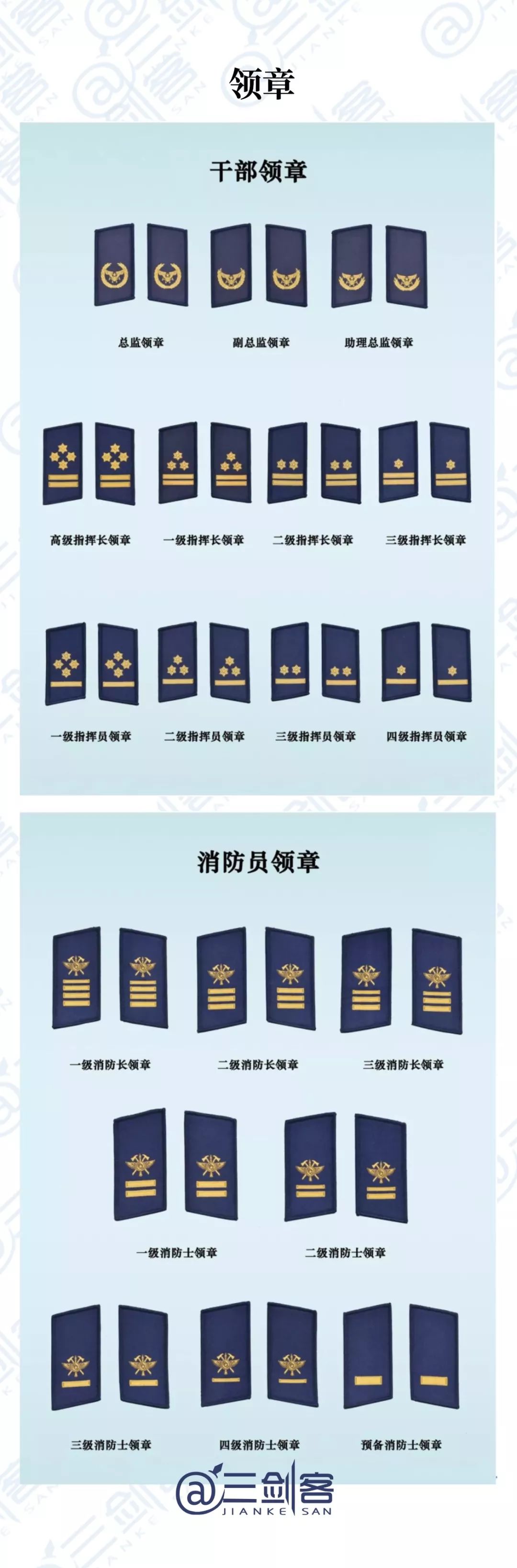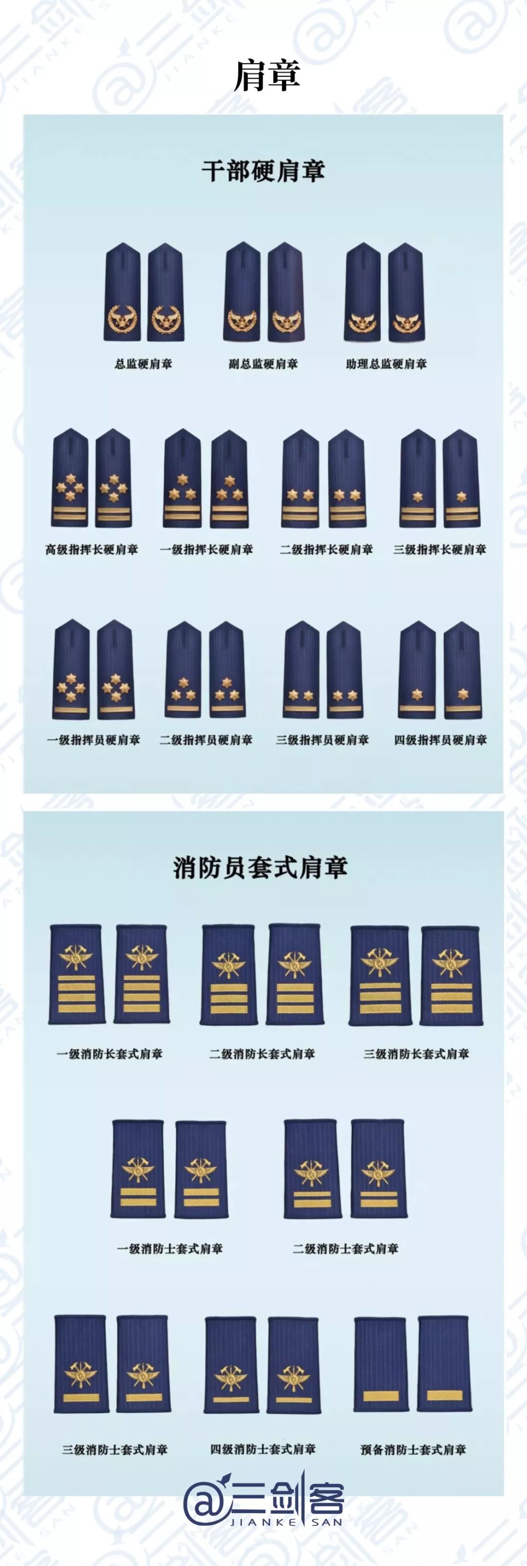 總監、指揮長、指揮員、消防長、消防士、預備消防士。