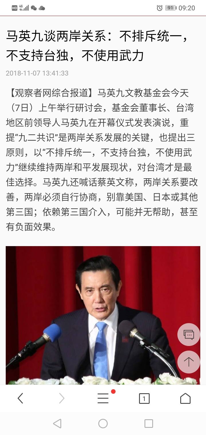 11月7日,觀網發了篇《馬英九談兩岸關係。截屏如下: