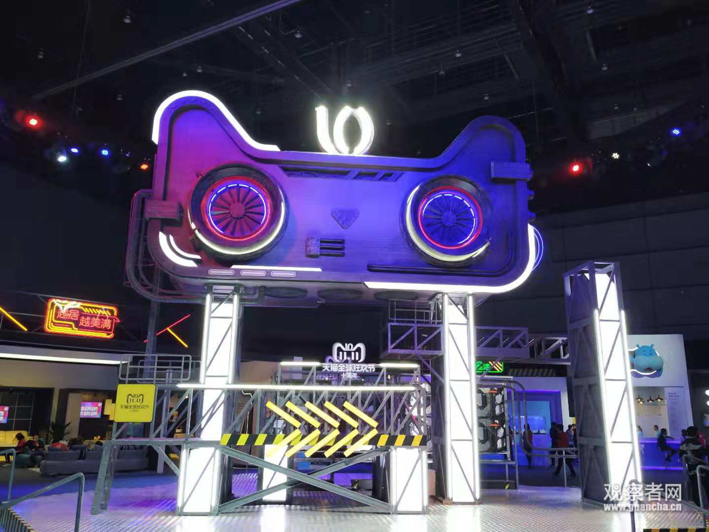 今年的會場有點時尚科技感,會場內展示雙11十年的展板,頗有點科技館的味道。