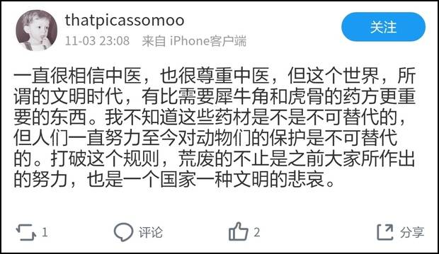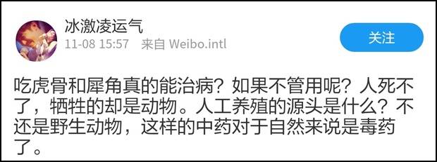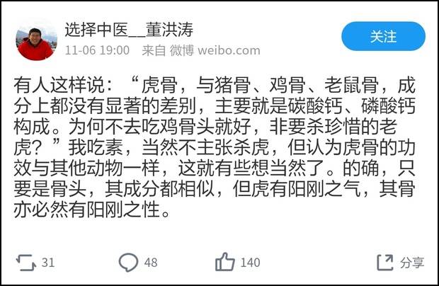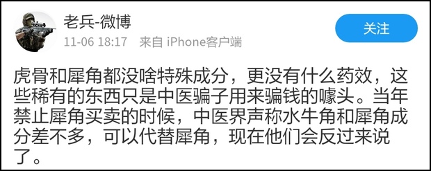 但也有網友認為,虎骨與犀角確有藥效,中醫的價值不可被否認。