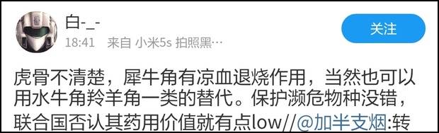 先是有網友質疑虎骨與犀角並不具備不可替代的藥效。