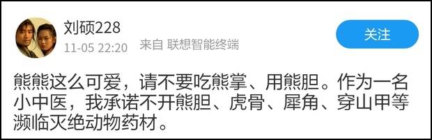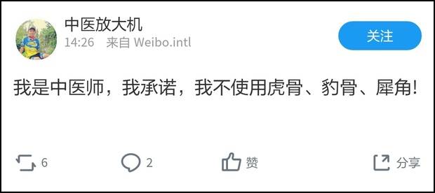 不少中醫從業者在微博做出承諾,不使用瀕危動物藥材。