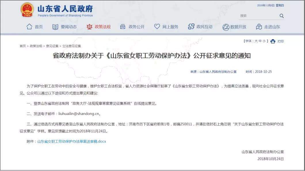 據法制日報報道,《辦法》稱,為了保護女職工在勞動中的安全與健康,維護女職工合法權益,根據《中華人民共和國勞動法》《女職工勞動保護特別規定》等法律、法規,結合山東本省實際,制定本辦法。