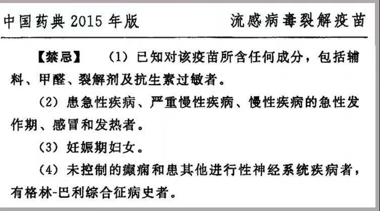 絕大多數流感疫苗的説明書裏將雞蛋過敏作為禁忌,但中國疾控中心最新的流感疫苗指南文件指出:2015版藥典已經取消雞蛋過敏禁忌,國外研究也證明雞蛋過敏不是流感疫苗的接種禁忌症。
