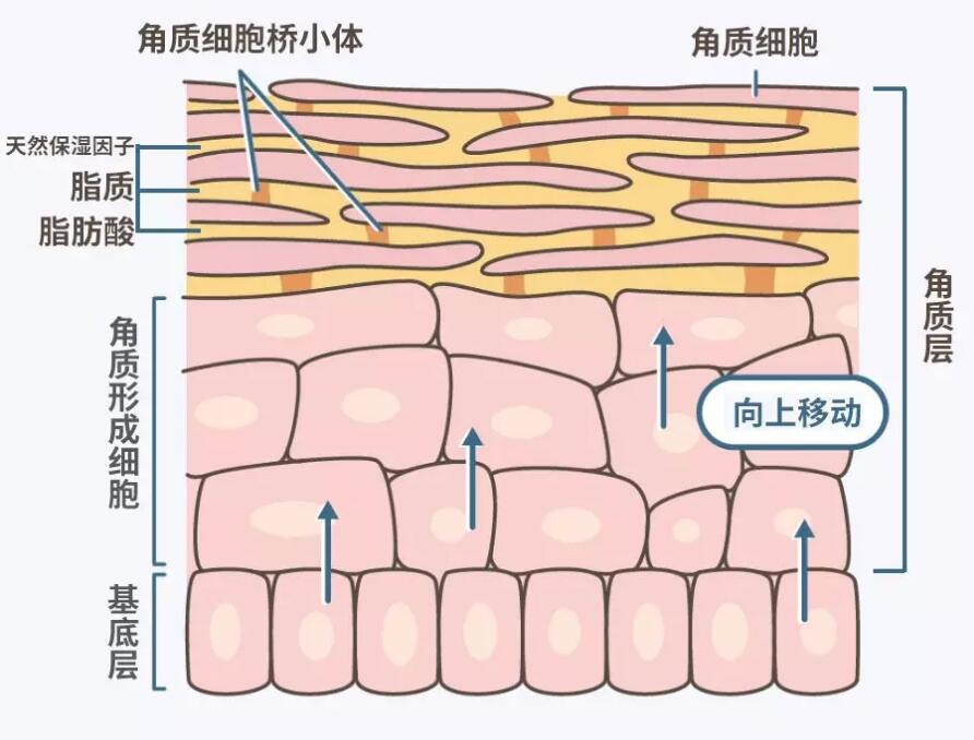 我們每一個細微的動作,都會有很多角質皮屑自然脱落,但表皮也沒歇着,它時刻在合成新的角質層,正常皮膚的角質細胞能達到5-20層,以保證皮膚含水量的穩定。