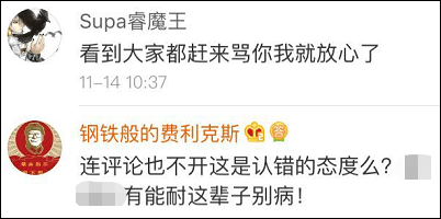 由於本人朋友圈不正當的言論,給大家帶來的不適,在此,我給大家説一聲,對不起!感謝大家的批評和指正!