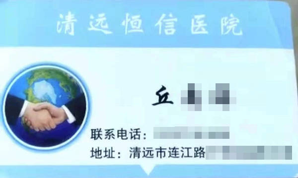 曾麗説,10月4號,她和男友從英德去清遠清城恆信醫院求醫,在該院二樓一間辦公室見到丘某。丘某約六七十歲,自稱曾是某軍醫院的醫生,退休後被清遠清城恆信醫院返聘。