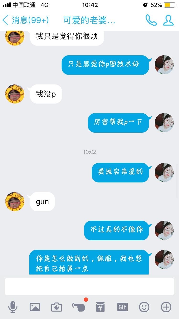 也許,這兩位老哥對我也並沒有意思,所以説話也不太講究。但是這説話方式成了習慣,可就愁人了。隨手拿出虎撲老哥們曬的,與他們正在追求的妹子,或者是女朋友的聊天截圖: