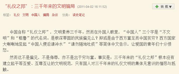 翻看一下這位@作家王湛 之前寫過什麼東西,你會更驚訝的。他寫過“中醫脈診是忽悠”“大熊貓是老外發現的”“黃帝不是中國人”“夏朝是不存在的”“禮儀之邦是個文明騙局”。