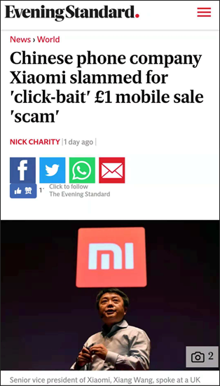 小米進軍英國一元閃購活動涉嫌欺詐?已二度道歉_風聞