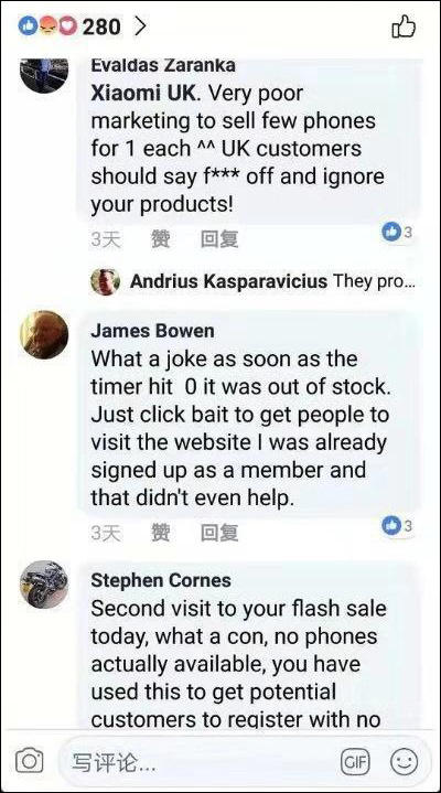 包括像是網站後台代碼一事也沒有解釋清楚。不少的英國消費者在社交媒體上發文,言辭之激烈,完全可以體會到他們對於小米的憤怒和不滿。