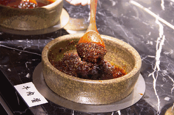 好的芝麻醬越調越稠,依據個人口味撒上花生碎、香菜等配料,調製成千人千碟的蘸料,不過是一頓火鍋的開始。