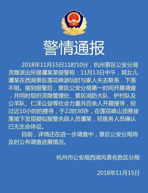 錢報記者從留言的網友處瞭解到:“杭州警方和消防等救援力量,在靈隱派出所集結,依據線索制定計劃後,冒雨在靈隱寺山林地帶搜索,晚上十點半多,**公羊會的何軍會長在微信上發了“找到了”的消息。**目前我這邊收到的信息就是這些。”