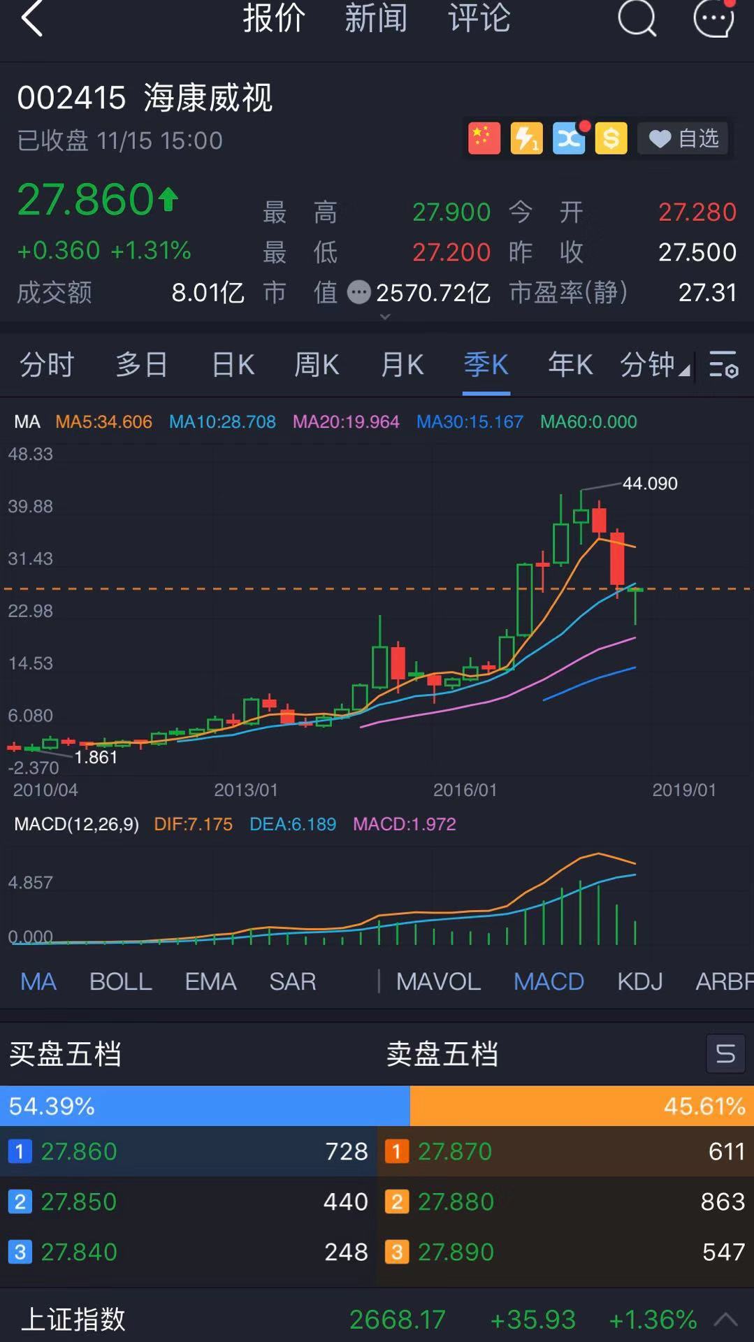 海康威視的股價這兩年真是走得不錯(在最近一段股災之前)。