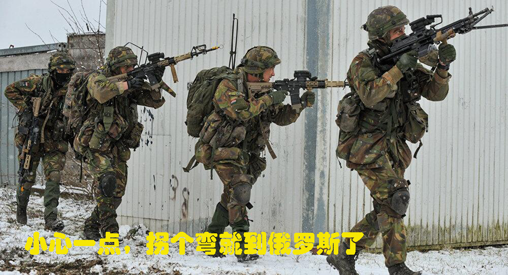 美國的選擇是,帶領人多勢眾的一幫小弟在俄羅斯邊境搞事情。