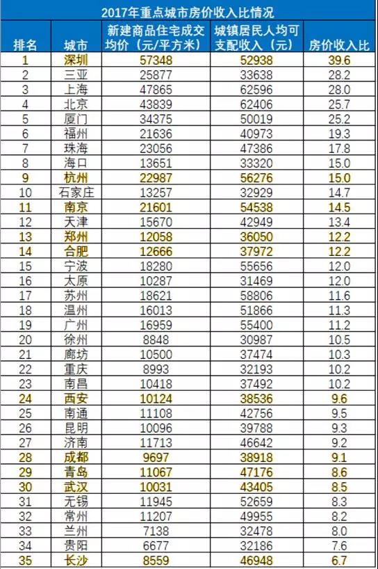 人才淨流入前十的城市,除深圳外,房價收入比都比較靠後