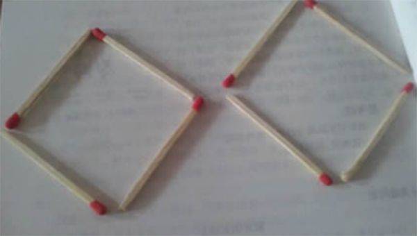 下面是由8根火柴棍組成的四邊形,要求讓其在只移動兩根的情況下,變成一個四方形,火柴棍不能折斷,也不能彎曲。