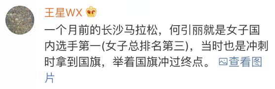 一個月前,同屬“奔跑中國”系列的長沙馬拉松,也是何引麗,她作為女子國內選手第一,舉着國旗衝過終點。