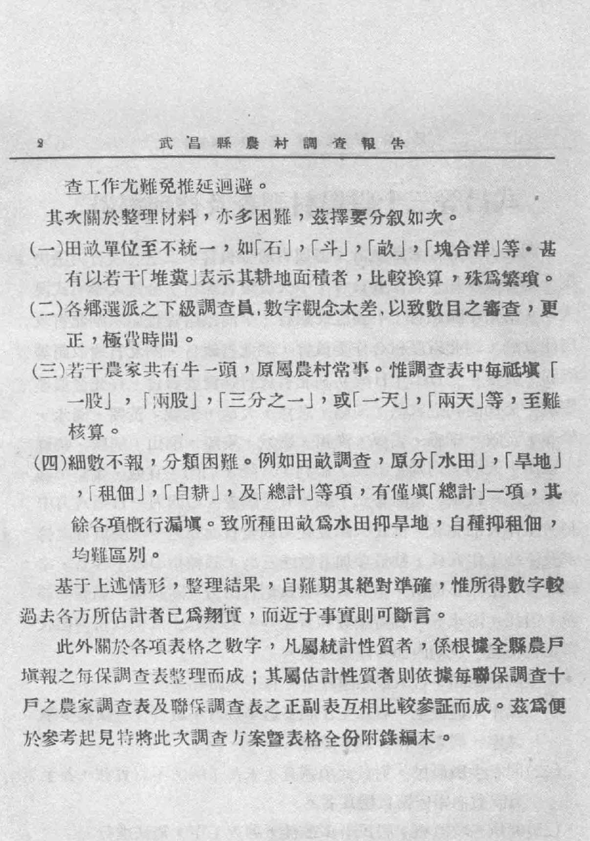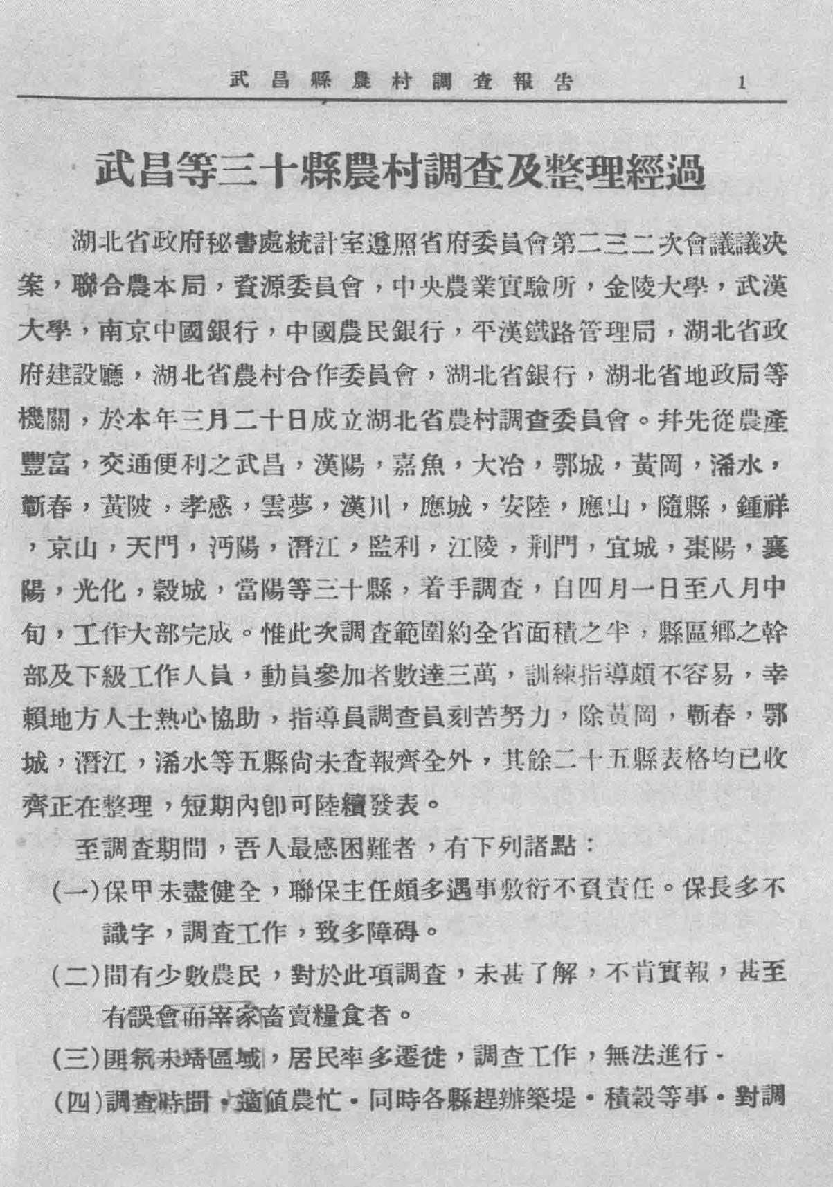 帝國主義、官僚和地主,是中國人民頭上的三座大山,在這張圖上很好地呈現出來了。實話説,我之前看的《民國時期經濟調查資料彙編》以及《民國時期社會調查資料彙編》這樣的官方材料,其質量上限也不能和他相比。比如這一份《武昌三十縣農村調查》,論來頭有一大堆,看內容主次不分,説起困難來倒是有一大堆(圖5、6)