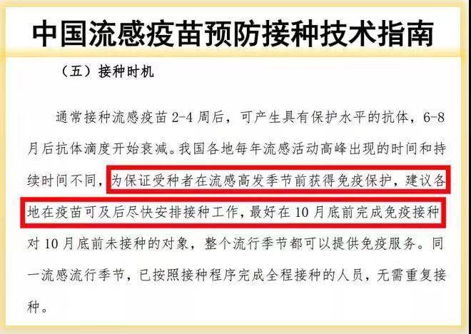 我國的流感疫苗指南里明確建議:最好在流感高發季節前(10月底前)完成接種。好吧,現在已經11月中旬下旬了,有疫苗就趕緊去接種吧。