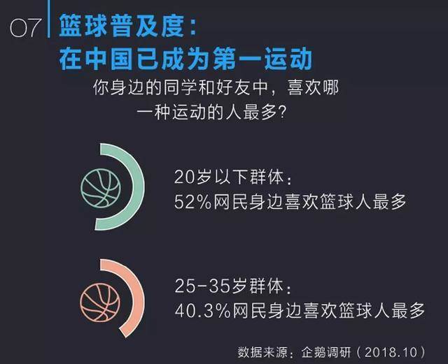 當天,騰訊體育聯合騰訊新聞、企鵝智酷製作的《中國籃球產業白皮書》正式發佈。其中數據顯示,在20歲以下年輕人和25-35歲成年人兩個典型羣體中,反饋身邊好友喜歡籃球最多的網民,分別為52%和40.3%,在所有運動中排名第一——有關足球籃球誰是第一運動的爭論,這份報告給出了一份騰訊的答案。