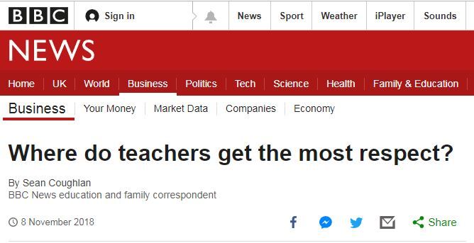 最近,BBC一則《哪個國家老師最受尊重》的新聞把目光鎖定中國。報道稱在中國,教師最受尊重。