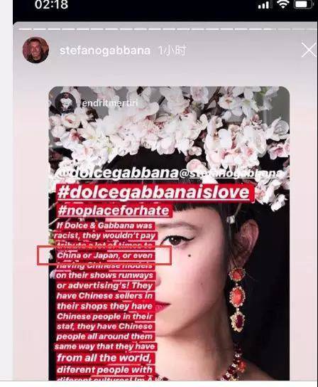 事情到此,貌似話題都只發生在中國和DG之間,但我們的作死小能手,DG創始人之一Stefano Gabbana不遺餘力,繼續在ins上做所謂聲辯,還cue到了日本: