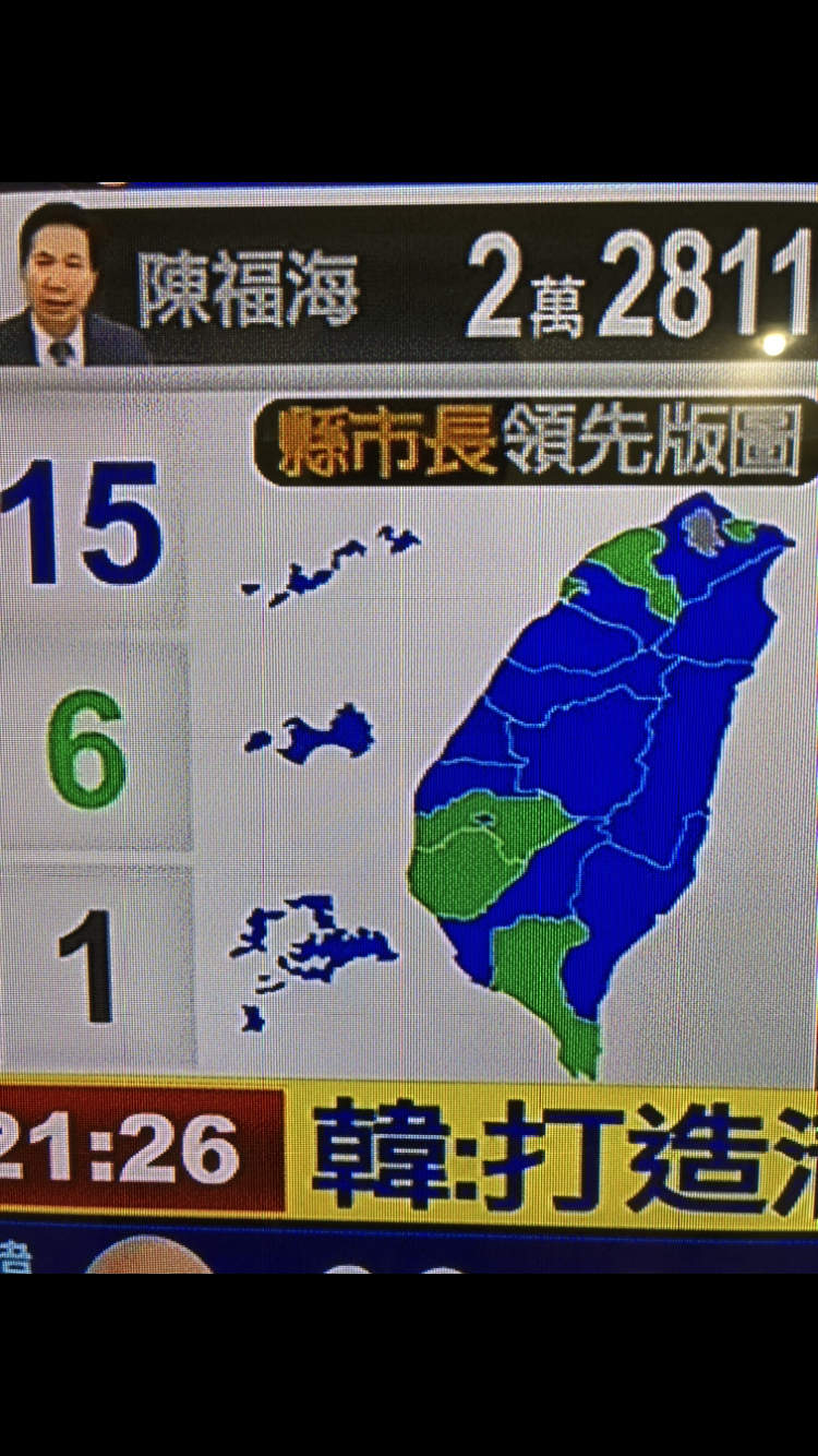 另外在台中方面,盧秀燕57萬對44萬,大幅領先。台北的柯文哲和丁守中持續膠着,新北的侯友誼基本可以自行宣佈當選了。看來這次國民黨有翻盤的機會,菜菜估計很緊張啊