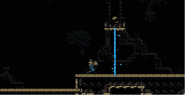 《信使》這時候從原先一路向下的橫板過關,變成了有一定開放性的“銀河戰士惡魔城”,玩家需要重返之前走過的路線,利用時空切換能力找到新的通道。與這個過程暗合的是,每次進行時空穿梭,遊戲畫面會在8bit與16bit間完成無縫切換,遊戲配樂也對應兩個時代的作曲風格,完美模擬了主機世代的升級換代。