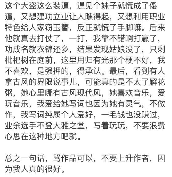 昨天發了《大學老師稱古風歌詞“狗屁不通”,遭粉絲圍攻:回家葬母吧》帖子之後,發現大家討論得非常熱烈。