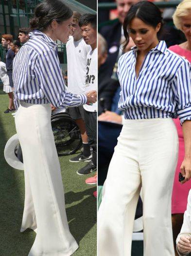 穿褲子(要知道,除了打獵的一些特殊場合,女王幾乎沒有穿過褲子,而梅根在第一次以王室成員身份觀看温布爾登網球賽時就穿了褲子)↓↓