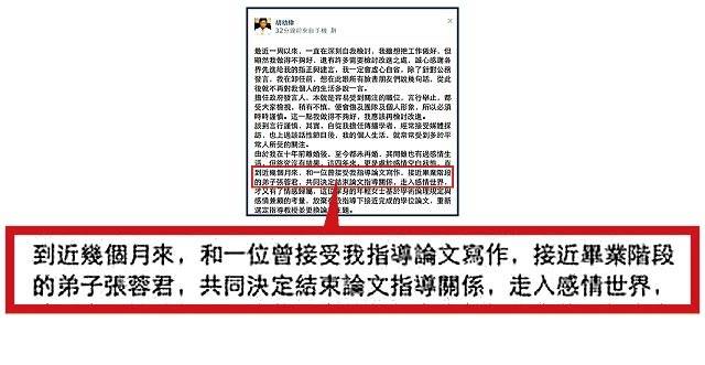 2012年10月6日,時年51歲的胡幼偉在個人臉書上自曝女研究生張蓉君的師生戀,引發輿論譁然。