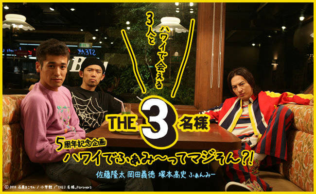 2005年,福田雄一終於能以導演的身份,執導了由同名漫畫改編的真人短劇《三位年輕人(THE3名様)》。雖然這只是部以DVD方式發行的真人短劇,不過從實際內容上看,這部作品已經展現出了福田雄一過人的創作才華——僅用三位深夜坐在餐廳的年輕人之間的談話,就講述了一系列奇妙且有趣的故事。