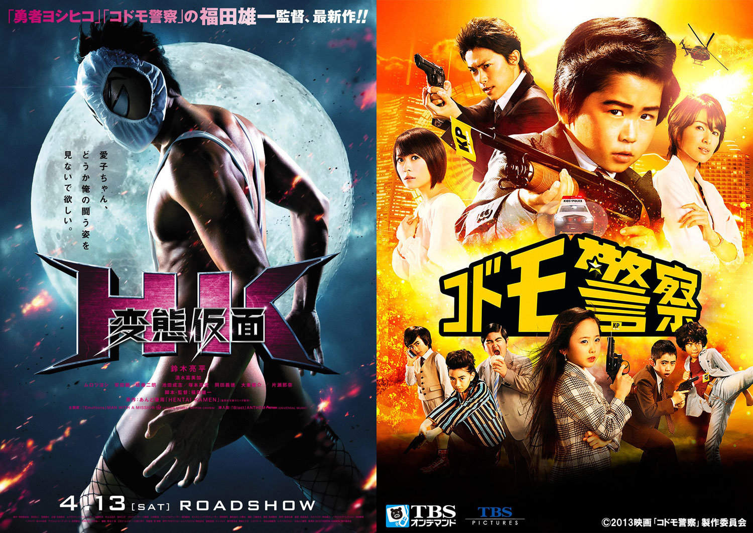 首先,這些作品通常都會有非常奇葩的基礎設定,這些設定可能是來源於IP改編,也可能是完全原創。例如2013年推出的真人電影《變態假面》,其中男主角戴上女生的胖次就可以變身的設定,就是來源於安藤慶周於1992年創作的同名少年漫畫作品;而2012年出品的電視劇《兒童警察》,則通過原創的手法,讓一羣小朋友因為“精英刑警吸入神秘氣體變成兒童和少年”的設定,一本正經地出演了代表正義的成年警察。
