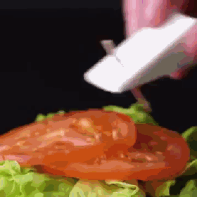 然而,這樣子的漢堡才是剛剛成型。要想拍得好看,還要在漢堡肉上刷上一層植物油、在蔬菜上噴上水霧、“毫不做作”地擠上醬汁才可以。