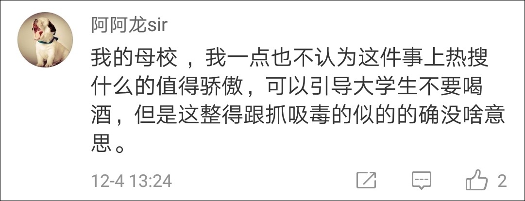 有網友認為,學校這種做法是可以理解的,因為現在喝酒出事的情況實在太多了。