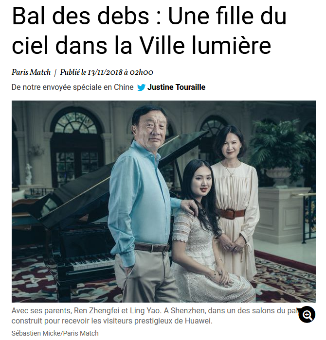日前,一向低調的華為創始人任正非,罕見地接受法國發行量最大的雜誌《巴黎競賽畫報》的採訪,和20歲的小女兒姚安娜(Annabel Yao)拍了全家福。隨後,他的小女兒在當地時間11月24日晚亮相巴黎名媛舞會。